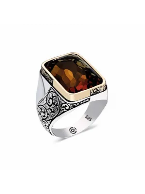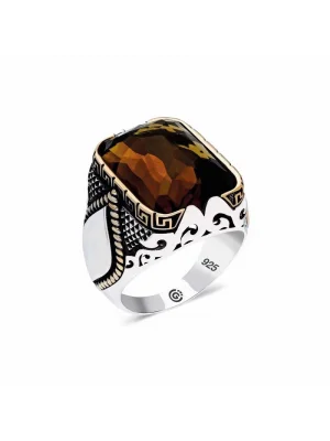 Gümüş Zirkon Zultanit Taşlı Kare Erkek Yüzük