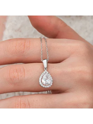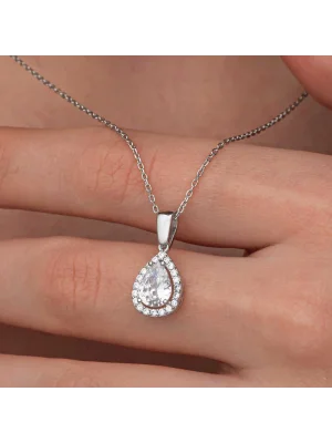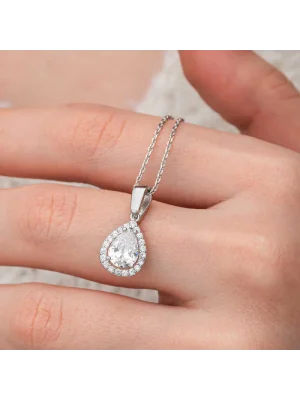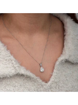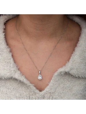 Gümüş Damla Beyaz Zirkon Taşlı Kadın Kolye