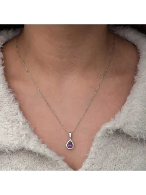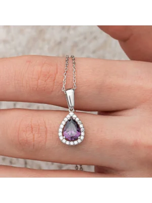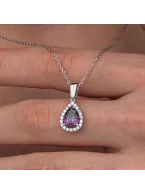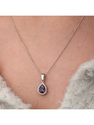 Gümüş Damla Mor Taşlı Kadın Kolye