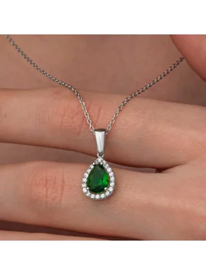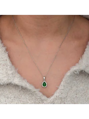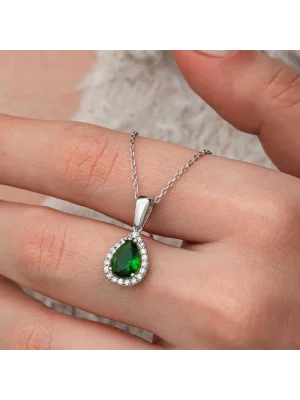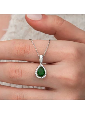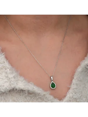 Gümüş Damla Zümrüt Taşlı Kadın Kolye