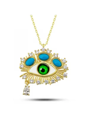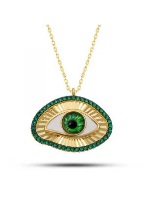 Gümüş Gold Zümrüt Göz Koruyucu Kadın Kolye