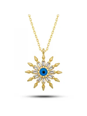 Gümüş Gold Koruyucu Göz Güneş Kadın Kolye