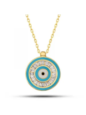 Gümüş Gold Nazar Boncuğu Kadın Kolye