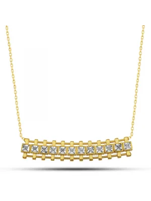 Gümüş Gold Zirkon Taşlı Kare Bar Kadın Kolye