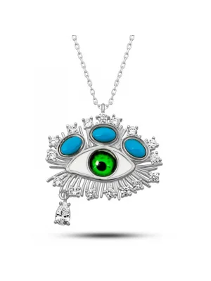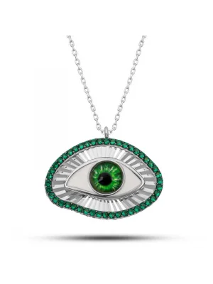 Gümüş Zümrüt Göz Koruyucu Kadın Kolye