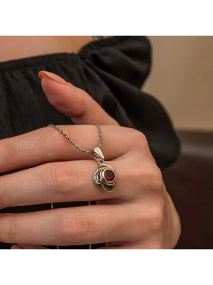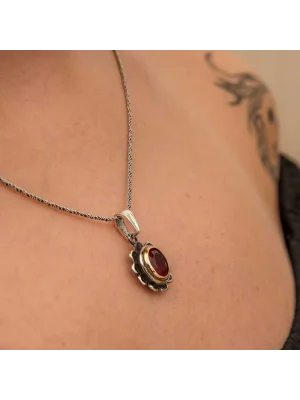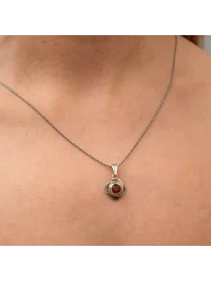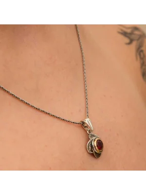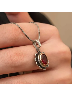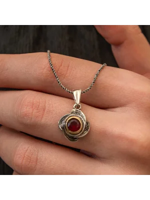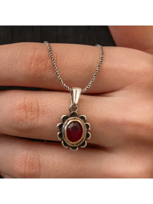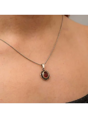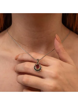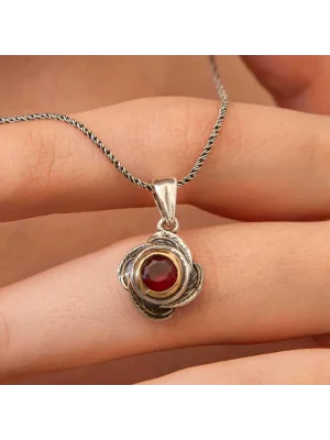 Gümüş Kırmızı Taşlı Çiçek Model Kadın Kolye