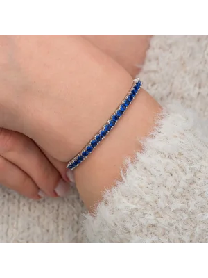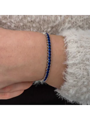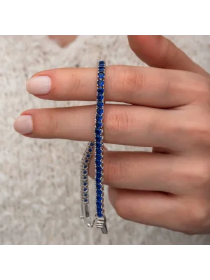Gümüş Lacivert Zirkon Taşlı Su Yolu Kadın Bilekik