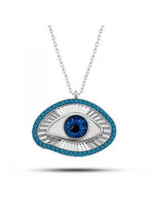 Gümüş Mavi Göz Koruyucu Kadın Kolye