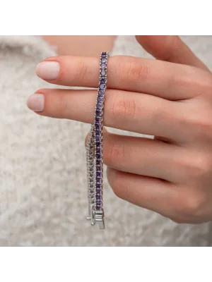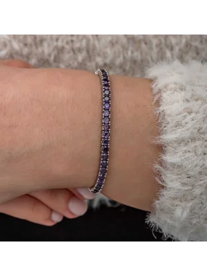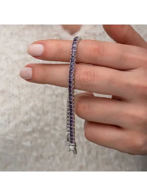 Gümüş Mor Zirkon Taşlı Su Yolu Kadın Bileklik