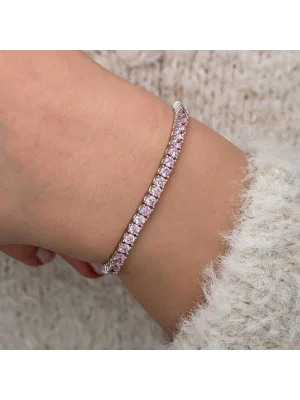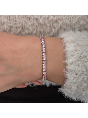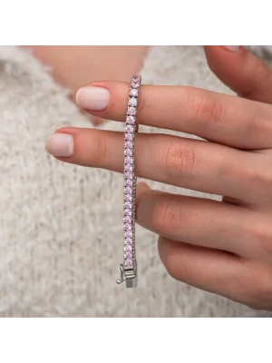 Gümüş Pembe Zirkon Taşlı Su Yolu Kadın Bileklik