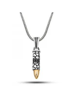 Gümüş Siyah Zirkon Taşlı Mermi Erkek Kolye