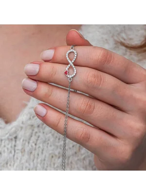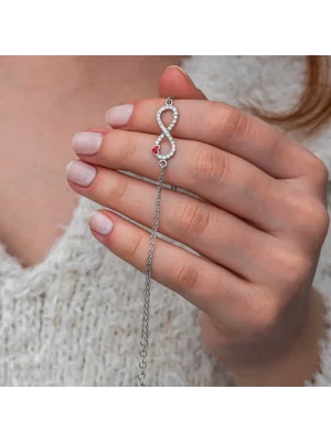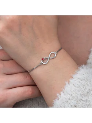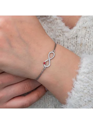 Gümüş Sonsuzluk Kırmızı Kalpli Kadın Bileklik