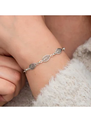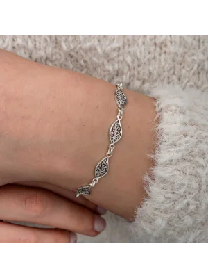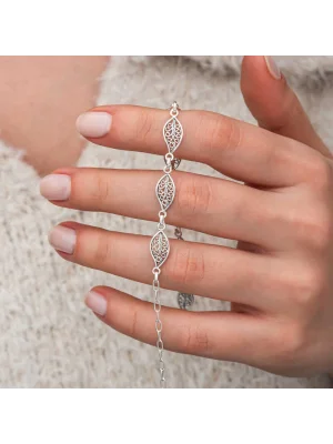 Gümüş Telkari Yaprak Desenli Kadın Bileklik