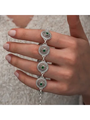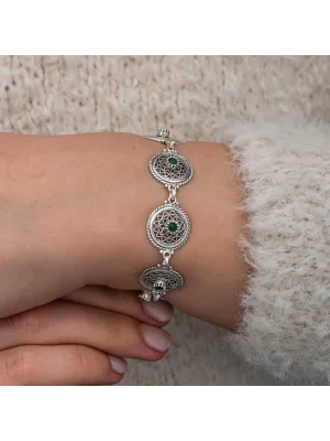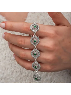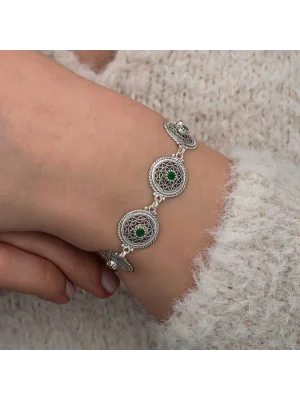 Gümüş Telkari Zümrüt Taşlı Kadın Bileklik