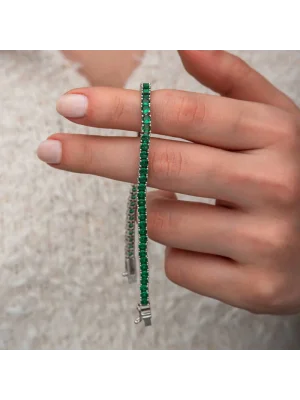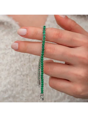 Gümüş Yeşil Zirkon Taşlı Su Yolu Kadın Bileklik