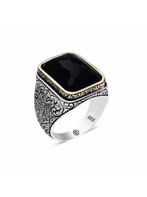 Gümüş Zirkon Siyah Taşlı Kare Erkek Yüzük