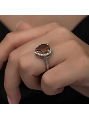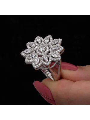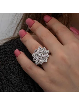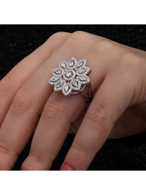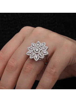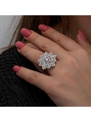 Gümüş Zirkon Taşlı Çiçek Kadın Yüzük