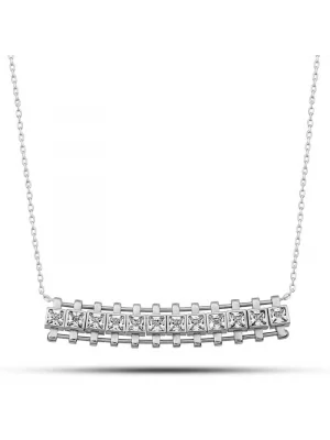 Gümüş Zirkon Taşlı Kare Bar Kadın Kolye