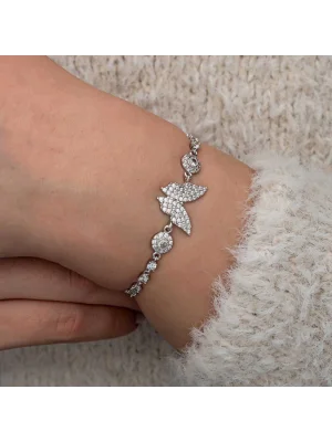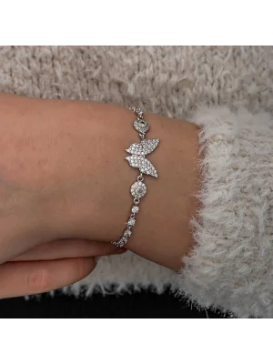 Gümüş Zirkon Taşlı Kelebek Kadın Bileklik
