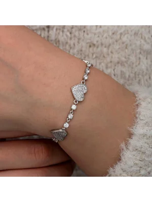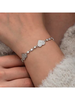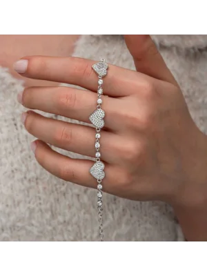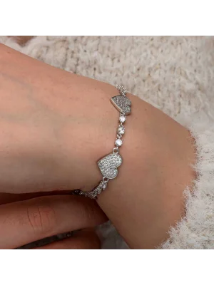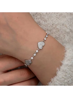 Gümüş Zirkon Taşlı Sıralı Kalp Kadın Bileklik