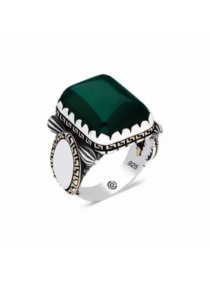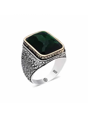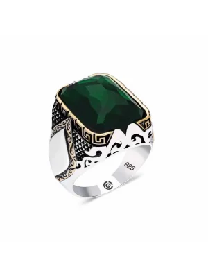 Gümüş Zirkon Yeşil Taşlı Kare Erkek Yüzük