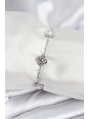 316L Çelik Gold Renk Beyaz ve Zirkon Taşlı Baby Boy Yonca Kadın Bileklik