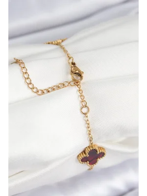 316L Çelik Gold Renk İtalyan Zincir Pembe Zirkon Taşlı Kalp Model Kadın Bileklik