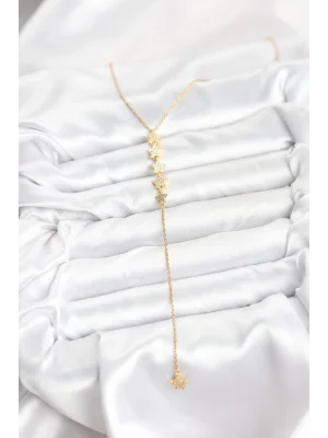 316L Çelik Zincir Altın Renk Ay Tasarımlı Renkli Zirkon Taşlı Çiçek Kolye
