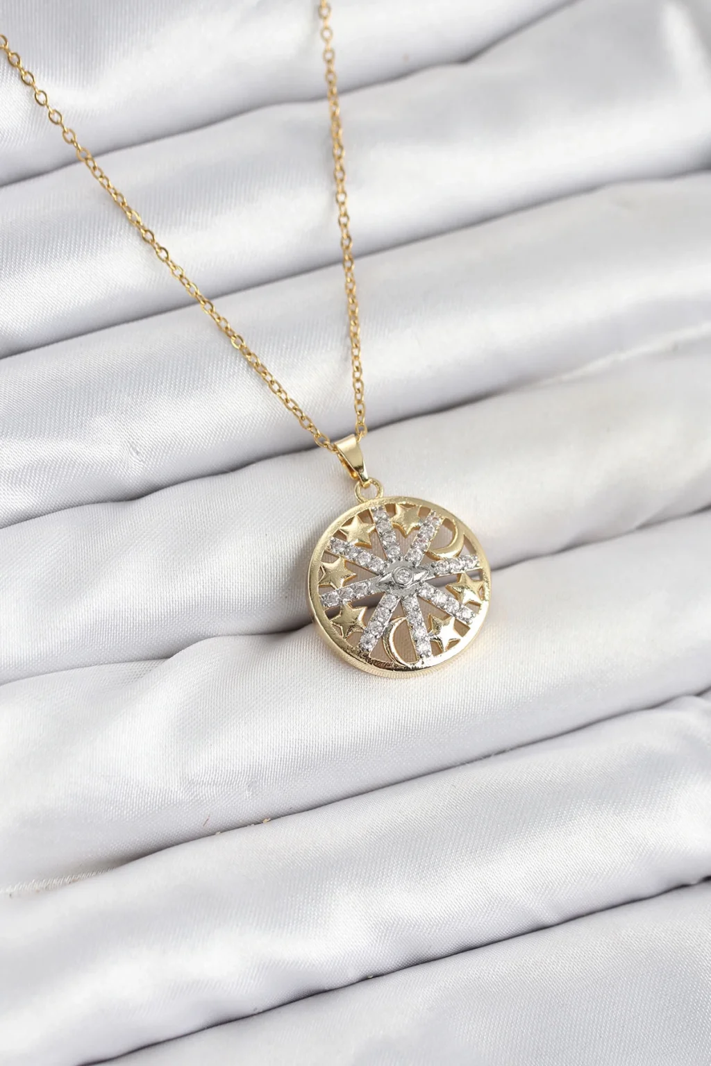 316L Çelik Zincir Gold Renk Zirkon Taşlı Kadın Kolye