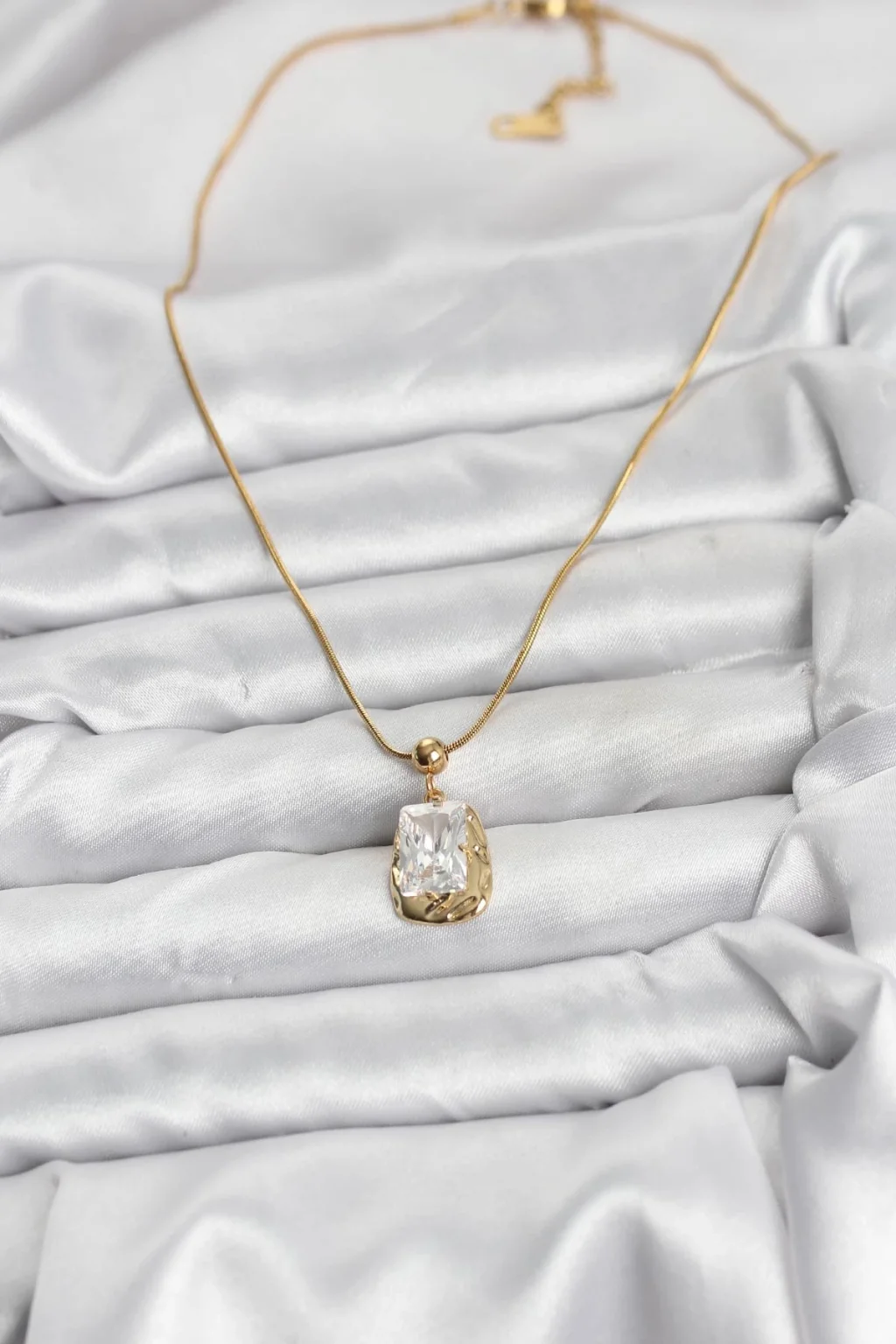 316L Çelik Zincir Gold Renk Zirkon Taşlı Kadın Kolye