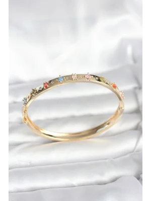 316L Çelik Zincir Mor Mineli Sanatsal Portre İnci Detaylı Papatya Model Gold Renk Kadın Bileklik