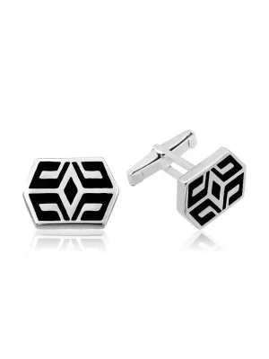 Gümüş Siyah Zeminli Desenli Oval Kol Düğmesi