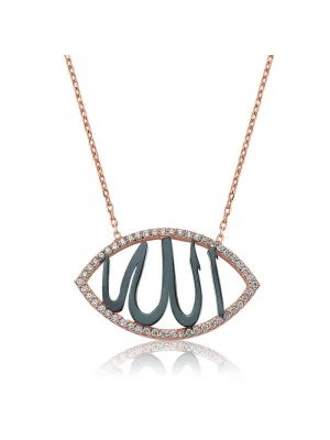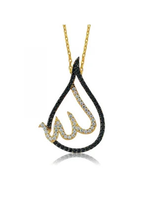 Gümüş Gold Allah Yazılı Kadın Kolye