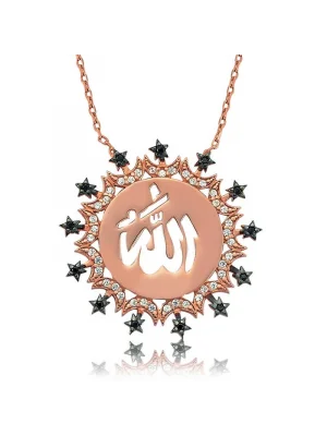 Gümüş Rose Arapça Allah Yazılı Bayan Kolye