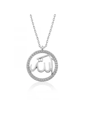 Gümüş Allah Yazılı Bayan Kolye