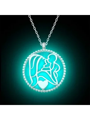 Gümüş Fosforlu Anne Çocuk Sevgisi Kadın Kolye