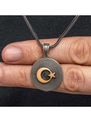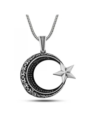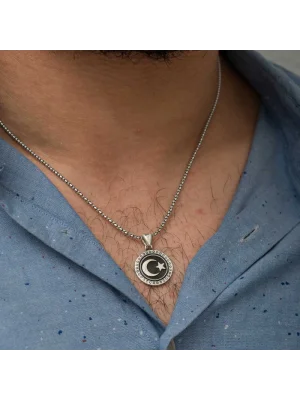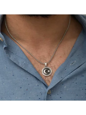Gümüş Ay Yıldızlı Erkek Kolye