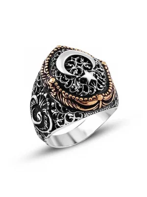 Gümüş Ay Yıldız Tuğra Erkek Yüzük