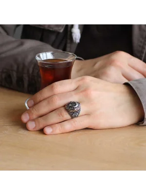 Gümüş Ay Yıldız Osmanlı Arması Kartal Desenli Erkek Yüzük