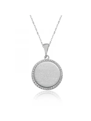 Gümüş Ayetel Kürsi Yazılı Plaka Bayan Kolye