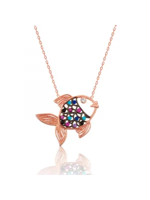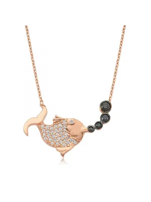 Gümüş Rose Çift Yunus Balığı Kadın Kolye