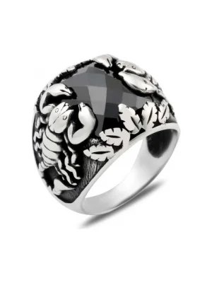 Gümüş Siyah Taşlı Akrep Erkek Yüzük
