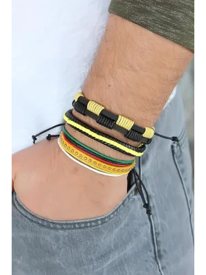 Sarı Renk Zımbalı Deri Erkek Bileklik Kombini