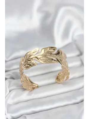 Gold Renk Pirinç Levha Yaprak Model Kadın Bileklik
