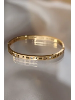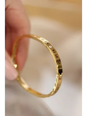 316L Çelik Roma Rakamlı Gold Renk Bilezik Kelepçe