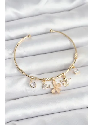 Çiçek ve Kelebek Charmlı Gold Renk Pirinç Kadın Bileklik