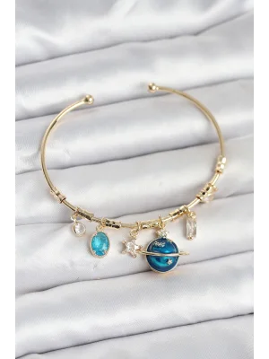Gezegen Charmlı Gold Renk Pirinç Kadın Bileklik