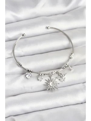 Güneş Charmlı Gümüş Renk Pirinç Kadın Bileklik