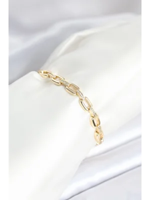 Pirinç Gold Renk Zincir Model Zirkon Taşlı Kadın Bileklik