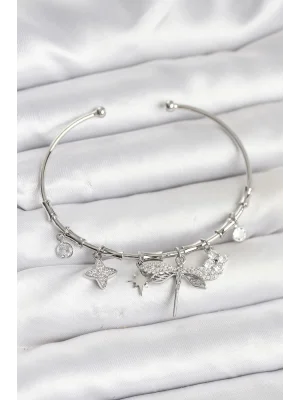 Caretta Caretta Charmlı Gümüş Renk Kadın Bileklik